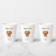 These dog wedding paper cups are the a great way to include your pet in your wedding. This design is complete with the saying "Drinks On Me!", the dog's name. the bride and groom names, the date, and an adorable Golden Retriever graphic. I have many other dog breeds available in my store. If you look at my "dog wedding napkins" in my store, you will see a selection of different breeds. If you find a breed there that matches your dog, please feel free to message me on Zazzle *before you order* and I can get that breed on paper cups for you.