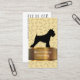 Upscale pet grooming business cards you can customize with effective vertical design that includes a gold printed name emblem, dog bones, and a Schnauzer standing on the front, with and contact and company info on the back. Best business cards for themes related to dog grooming, pet grooming, pet salon or pet training or obedience.