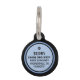 This pet tag is important since my cat Joey likes to take naps in random vehicles. Works well with my baby blue collar and my cat's blue eyes. Too bad he lost both collar and ID in a fight last night. Now I need to order another. :(