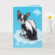 Comfort someone who has lost a Boston Terrier with this customizable sympathy card featuring art by Andie of a BT with angel wings.