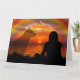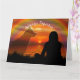A heart warming and poignant condolence card for a lost pet showing the silhouette of a woman looking out at a beautiful sunset and the faint image of a ghostly dog presence standing close by keeping her company. A rainbow overhead represents the bridge dogs pass over to wait for the day they will meet their owners again. Text on front customizable and left blank inside to write your own message.