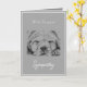 This refined sympathy card showcases a gently sleeping puppy, artistically rendered in gray and seamlessly integrated into a sleek, rectangular design. The monochromatic gray tones create a calming and modern aesthetic, while the white font adds a crisp contrast for a clean and elegant look. Perfectly suited to express your condolences, the card’s understated yet poignant imagery offers solace and comfort during a difficult time. The combination of minimalist design and heartfelt sentiment makes it a beautiful way to honor the memory of a cherished canine friend. A graceful and comforting choice for conveying your sympathy.