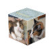 Remember your furry friend with this custom ornament commemorating the years they spent here with you before crossing the Rainbow Bridge. The top side of the cube is a pale aqua blue with a simple leaf wreath surrounding the words "In Loving Memory" in a modern script. A sage green banner spans the bottom and can be personalized with the name of your pet, using the easy provided template. Above this ribbon are two lines of customizable text - for any personal message, dates, or other details. The four sides of the cube contain a sample images - just replace them with your own images of your beloved pet. A classic, modern remembrance of your furry family member.
