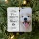 Pet memorial christmas tree decoration featuring a photo of your beloved dog or cat, a modern white marble background, a paw print with a heart, a sympathy remembrance quote that reads "you left your paw prints forever on my heart", plus their name, and dates. Place it on your xmas tree or anywhere in your home, this ornament makes a unique gift for someone special.