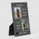 A lovely pet memorial photo plaque to cherish those precious memories of your best friend. gray background with 2 slots for your photographs surrounded with a white frame Has the quote -" Missed beyond measure, loved beyond words " which says it all . A lovely memorial keepsake to honor your family dog, cat, horse or any animal or work colleague ( Police Dog) . Add your own 2 photograph, their name and dates to personalize. The quote can be amended if needed to customize the product. A must have for every dog mom and dog dad .