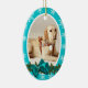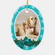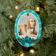 A festive oval shaped Xmas decoration, with white snowflakes, stripes and a traditional wreath filled with aqua blue snow berries, green leaves and a FAUX satin bow which frames a one photo template trimmed with a white edge. CUSTOMIZE IT - Change the photograph to your own and add the name of your pet and the dates that he was part of your family for. IDEAL AS - Stocking stuffers for friends, family, couples and loved ones who have lost a beloved animal.