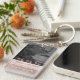 Create your own pet photo tribute keepsake keychain- Double sided- same on both sides. Add your own pet photo at the top. The bottom has a faux rose gold foil background with black leather look border on top with faux metallic, rose gold paw prints. Reads 'Always In My Heart' in modern, brush script, rose gold lettering. Pet's name is at the bottom in bold, rosy pink, rose gold letters. Just above is the dates of your beloved pet's life. We all love and miss our furry friends when they cross over the rainbow bridge. This is a way to remember the good times with your fur baby or give to a grieving pet owner for condolence. Customize however you like- any custom text you wish, or text colors or styles.