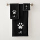 Pet paw and monogram on black Bath Towel Set. Elegant simple design for pet lovers!