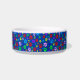 This is a heavy, durable bowl decorated with Tibbies of many colors, the perfect size for hungry/thirsty Tibs. The design is interesting and printing clear.