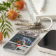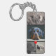 Pet photo collage keychain for pet lovers- Create your own photo keychain that is the same on both sides. Add your favorite 4 pet photos, 2 rectangle shape photos at the top and two square pictures on the bottom. A red, puffy look heart is overlaid on the intersection of 3 photos. With black frame edges, which may be changed to any color you prefer. Photos work best that are the same shapes. Not just for animal lovers, this custom photo keychain is a cute way to show off your favorite people, family members, or memories as well. Customize if you like with text. We have more pet photo gifts in our Zazzle.com/angela65* shop, as well as more photo keychain styles.