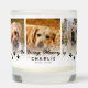Elegant pet memorial scented candle featuring the sympathy saying 'in loving memory of', your pets name, dates, paw prints, and 6 photos for you to replace with your own.