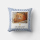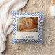 Pet Photo Name Blue Geometric Throw Pillow