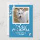 Merry Christmas cards from the pet loving family. Add a photo to light blue cards featuring a square photo template (for a picture of the dog, cat, pet or family) with paw prints at top and bottom. Various modern font styles are used for your choice of greeting with a place for a signature. Pretty blue Christmas greetings with white text and frame. The paw prints carry to the back of the card.