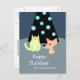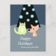 Cute dog and cat in front of Christmas tree with blue lights. Message says Happy Holidays and is fully customizable to suit any pet-related business.
