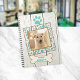 Keep your dog care notes and record keeping together in one place with this custom pet photo and title template on front. It has a white weathered wood background, ocean green paw print, and polka dot frame with brown edge. White bone with your own title under photo.