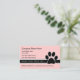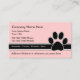 Pet service business cards with powerful business card design that has a paw print, background color you can change, and text space you can customize. Best business cards for themes related to pet grooming, pet sitting, salon, or kennel and day care.
