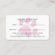 Modern Referral card designed for veterinary clinic, pet groomers, dog walkers, pet care services etc. Design features typography script ''referral card'' with animal icons on rose gold background, referral discount and paw print on the front. Personalize with more details on the back.