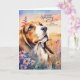 A beautiful illustration of a Beagle dog looking up, surrounded by wildflowers in a gorgeous country meadow, creates a sympathy card for the loss of a dog.