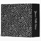 A binder with an attractive hand drawn original pattern made up of petal like shapes drawn with a chalk or batik like effect.