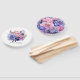Petal pink, cornflower blue, and mauve purple floral wedding favor fan customizable to your event specifics.