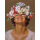 "Petal Pride" Margaret - Art & Floral Society. Margaret is a Schoolteacher and has a cascade of blooms framing her face shows a woman who’s clearly proud of her floral accomplishments, even if they seem a bit absurd captured in the stylized humorous watercolour portrait.