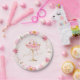 Petals and Prosecco Floral Bridal Shower Paper Plates feature a golden and pink prosecco glass adorned with delicate pink florals and petals. The design is perfect for a chic Petals and Prosecco themed brunch and bubbly celebration. Featuring graceful script calligraphy and elegant pink floral details.