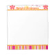 Personalize the name on this bright flowers and stripes bordered notepad in orange and pinks.. Created in part with graphics by ColorfulClipart at www.colorfulclipart.com. Great stocking stuffer or back to school gift.