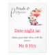 Modern Watercolor Blush Pink Flowers and Greenery with Glasses of Rose Prosecco Date Night Ideas Advice game Sign Poster perfect for your Floral Brunch or Bridal Shower Petals & Prosecco. Please visit my collection to see more designs for this theme and matching products.