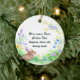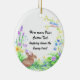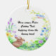 This design features a brown bunny as Peter Cotton Tail. He is sitting in a bed of greens and flowers shaped in a horse shoe. The flowers in blue, green, purple and yellow are in bloom and at the top is a bird perched on a vine of flowers. These ornaments are dated on the reverse side on some styles. Put all your own information on this ornament. Available in assorted styles.