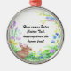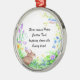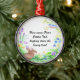 This design features a brown bunny as Peter Cotton Tail. He is sitting in a bed of greens and flowers shaped in a horse shoe. The flowers in blue, green, purple and yellow are in bloom and at the top is a bird perched on a vine of flowers. These ornaments are dated on the reverse side on some styles. Put all your own information on this ornament. Available in assorted styles.