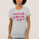 My overall review is that the T-shirt is nice, it fits true to size however the font is significantly smaller than advertised and you can't read it. The printing is unreadable and there is a strain to read it. It does not look like the advertised product. Maybe the shirt color is darker or a larger more visible font should have been used. Photos with and without flash and font is barely legible.