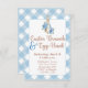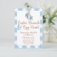 So cute! Peter Rabbit Easter Brunch & Invitation in blue gingham plaid design.