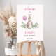 Watercolor Peter Rabbit Baby Girl's Pink Floral Baby Shower Welcome Sign. Matching items available.