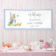 Cute hand painted watercolor Peter Rabbit in the garden welcome sign banner for Baby boy Baby Shower.