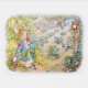 Peter the rabbit eating a carrot in Mr. Mc Gregor's vegetable garden.
