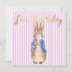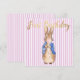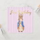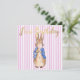 Peter the Rabbit blowing a pink bubble gum with a pink stripe background. A unique baby shower gift!