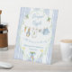 A Charming Delivery from Mr. McGregor's Garden! The Diaper Raffle Pedestal Sign features a custom hand-painted frame of a crisp blue vertical stripe pattern accented with a lush greenery wreath, creating a clean, classic, and welcoming look. A sweet watercolor clothesline is strung across the center, proudly displaying tiny, adorable items, each subtly featuring Peter Rabbit. The scene is completed with a darling blue bow holding a bunch of fresh carrots, and bright, cheerful daffodils, all rendered in a soft watercolor style. Easily add your own details and change the font style, size color and placement if you would like to. This cute sign invites your guests for a fun game in the "hoppy" anticipation of your baby boy's arrival!
