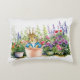 Peter the rabbit sitting in a ceramic plant pot with a flower garden background