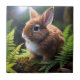 "Petite Charm: The Brown and White Dwarf Bunny" Ceramic Tile