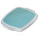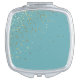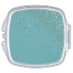 Shown in one of the 2020 wedding colors "Tropical Pool Blue" with petite golden-color stars on the angle across the mirror's top. Stars are not actual gold or gold foil nor metallic gold, simply a gold-like color. Case of compact is silver tone. Shown in the square shape.