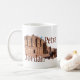 Petra is an incredible city carved into the red sandstone mountains of Jordan in the Middle East. The ancient monastery has served as a Nabataen Tomb and a Byzantine Church. In this image, a donkey, adorned with colorful blankets, stands overlooking the amazing architectural structure. This design makes a great, travel souvenir! This coffee mug is fully customizable.