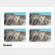 Eye-catching rectangular stickers feature a distinctive photograph of tall desert mountains in the Blue Mesa badlands of Petrified Forest National Park near Holbrook, Arizona. The multi-colored rock mountains have many crevices and crags filled with shadows showcasing the texture of the formations. A clear blue sky contrasts the desert landscape.