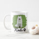 Celebrate your furry best friend with this charming personalized pet photo mug! Featuring a fluffy pure white Samoyed sitting proudly in a lush green field, surrounded by a modern brush-stroke frame for a clean artistic look. The elegant cursive name “Koda” and playful paw print add a warm, custom touch that pet lovers adore.