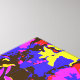 A vibrant blue, purple, red, yellow and black pop art design of petunias.