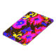 A vibrant blue, purple, red, yellow and black pop art design of petunias.