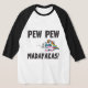 I bought the Men's Basic 3/4 Sleeve Raglan T-Shirt, White/Navy. It arrived on time for a gift and is of a great quality and fits perfectly! So cute! Zazzle has done it again! The printing was clear and filled in solidly.