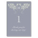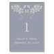 A contemporary wedding table number card featuring a tree of life illustration. Two branches are intertwined with pale yellow leaves on a medium gray background. A monogram is inserted between the branches.