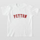 Peyton! Is your name Peyton? Or do you have a husband, boyfriend, male family member or male friend named Peyton? If so, this "Banner" shirt is exactly the gift that you're looking for! The design features "Peyton" in arched red lettering across the chest in the classic College font.