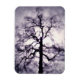 A photograph of a winter tree with the sun behind it, digitally manipulated to look like a fantastical specter with its hand upraised, the bright light shining through the branches and darker grey and lavender clouds swirling around the "fingers".