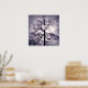 A photograph of a winter tree with the sun behind it, digitally manipulated to look like a fantastical specter with its hand upraised, the bright light shining through the branches and darker grey and lavender clouds swirling around the "fingers".